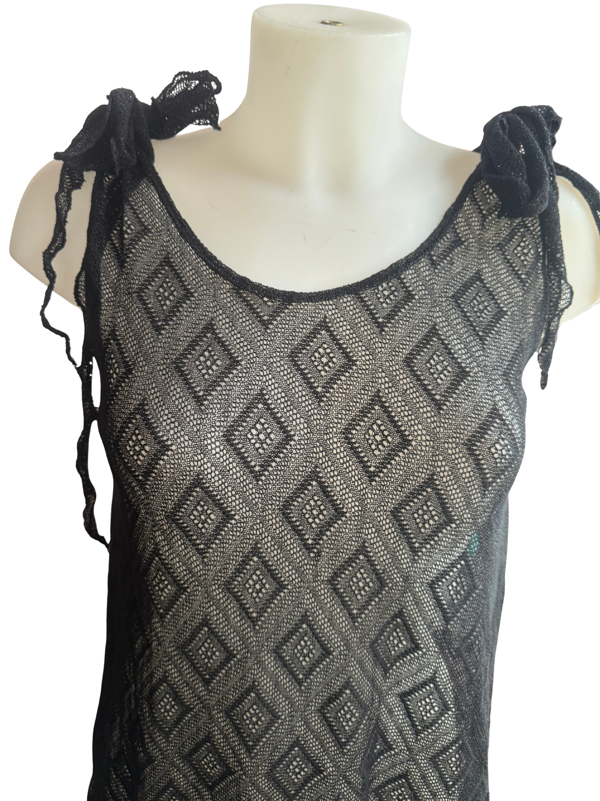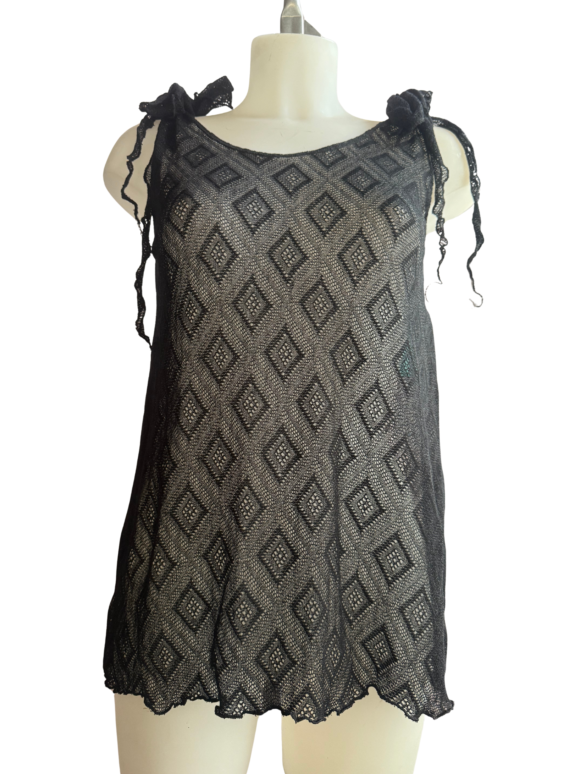 Traje negro transparente de arcilla. Anudada muy cortito para tus noches de verano.